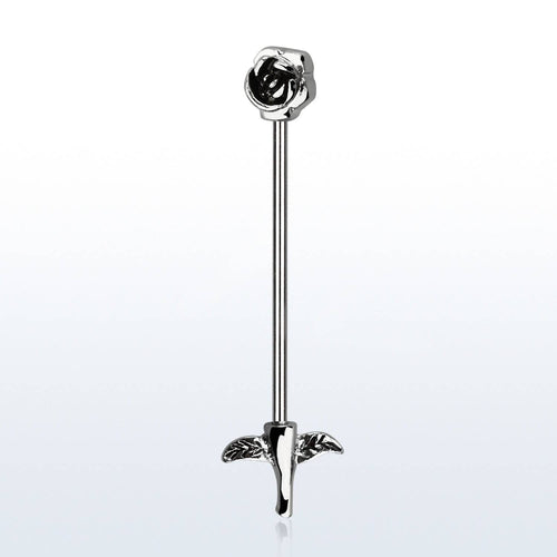 316L Surgical Steel Rose Flower and Stem Industrial Straight Barbell