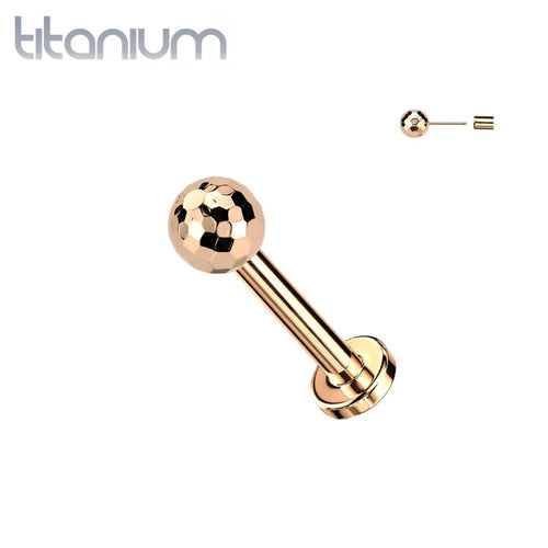 Implant Grade Titanium Rose Gold PVD Threadless Push In Glitter Ball Top Labret With Flat Back