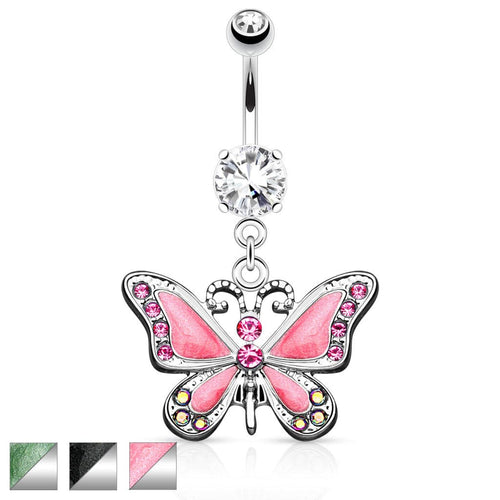 316L Surgical Steel Dangling Epoxy CZ Cute Butterfly Belly Button Navel Ring