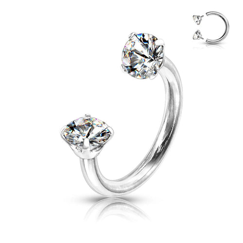 Internally Threaded Surgical Steel Double White CZ Gem Horseshoe