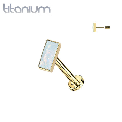 Implant Grade Titanium Gold PVD White Opal Rectangle Threadless Push In Labret