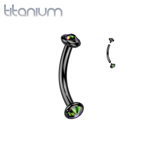Implant Grade Titanium Black PVD Vitrail Medium CZ Bezel Internally Threaded Curved Barbell