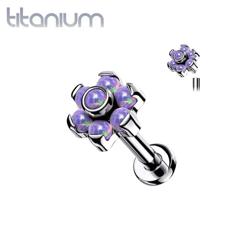 Implant Grade Titanium Purple Opal Flower Internally Threaded Flat Back Labret