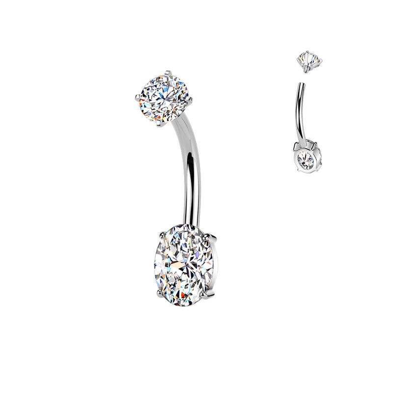 316L Surgical Steel Oval White CZ Internally Threaded Belly Ring