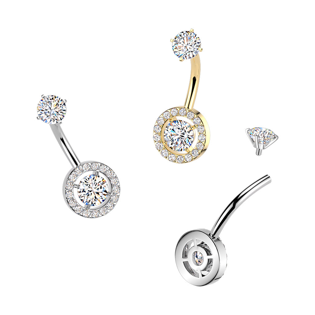 316L Surgical Steel Gold PVD White CZ Circle Pave Gem Internally Threaded Belly Ring - Pierced Universe