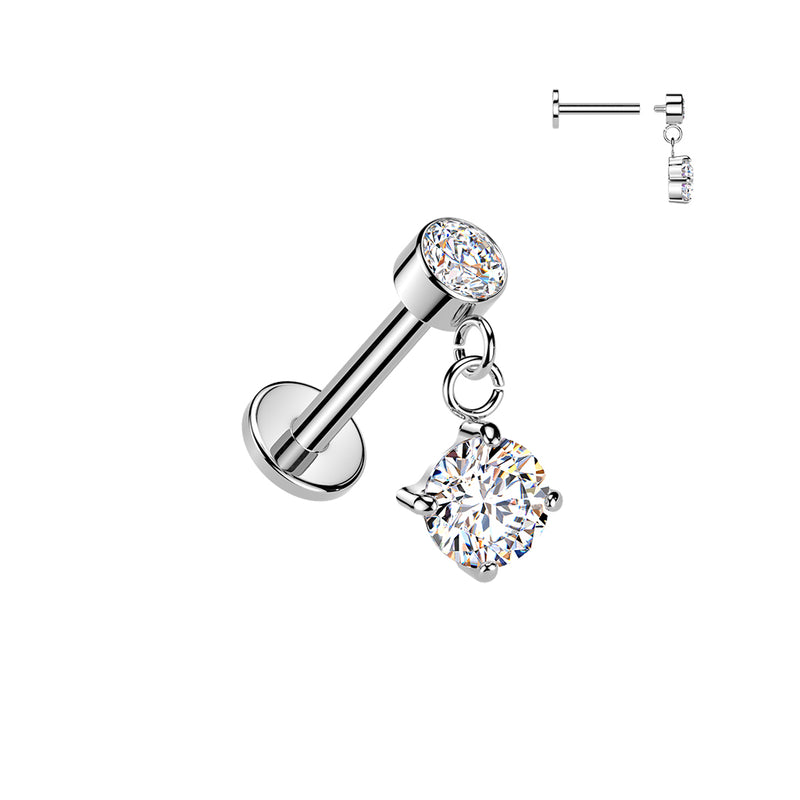316L Surgical Steel White CZ Circle Gem Dangle Internally Threaded Flat Back Labret