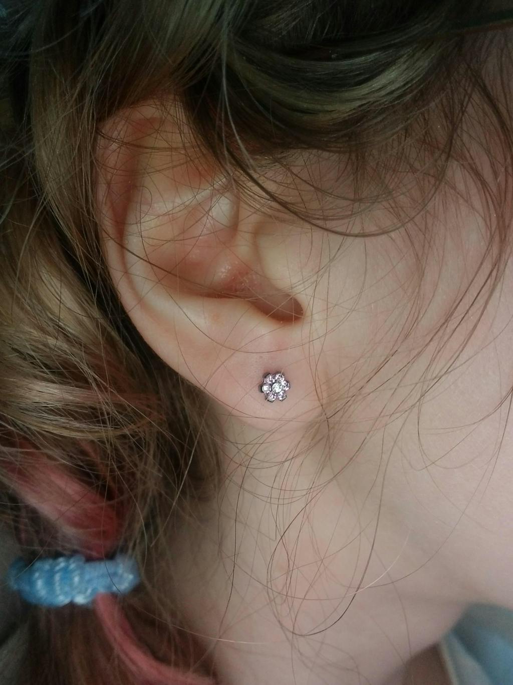 This Threadless Implant Grade Titanium Labret is perfect for any piercing. It has a Threadless Pink Cubic Zirconia flower top. It also comes in a variety of bar lengths. These are easy to put in and secure so it doesn't fall out.