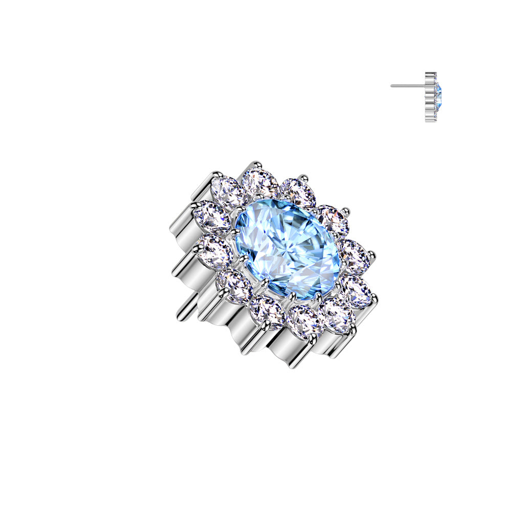 This Threadless Implant Grade Titanium Labret is perfect for any piercing. It has a Threadless CZ Sunflower top. It also comes in a variety of bar lengths. These are easy to put in and secure so it doesn't fall out.