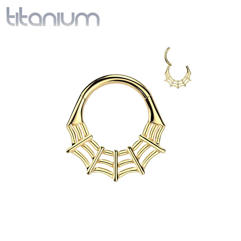 Implant Grade Titanium Gold PVD Spider Web Hinged Clicker Hoop