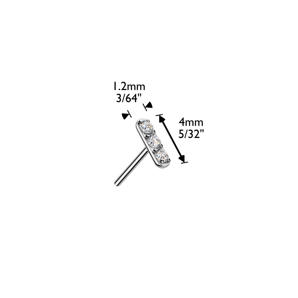 Implant Grade Titanium Gold PVD White CZ Small Dainty Minimal Bar Threadless Labret With Flat Back