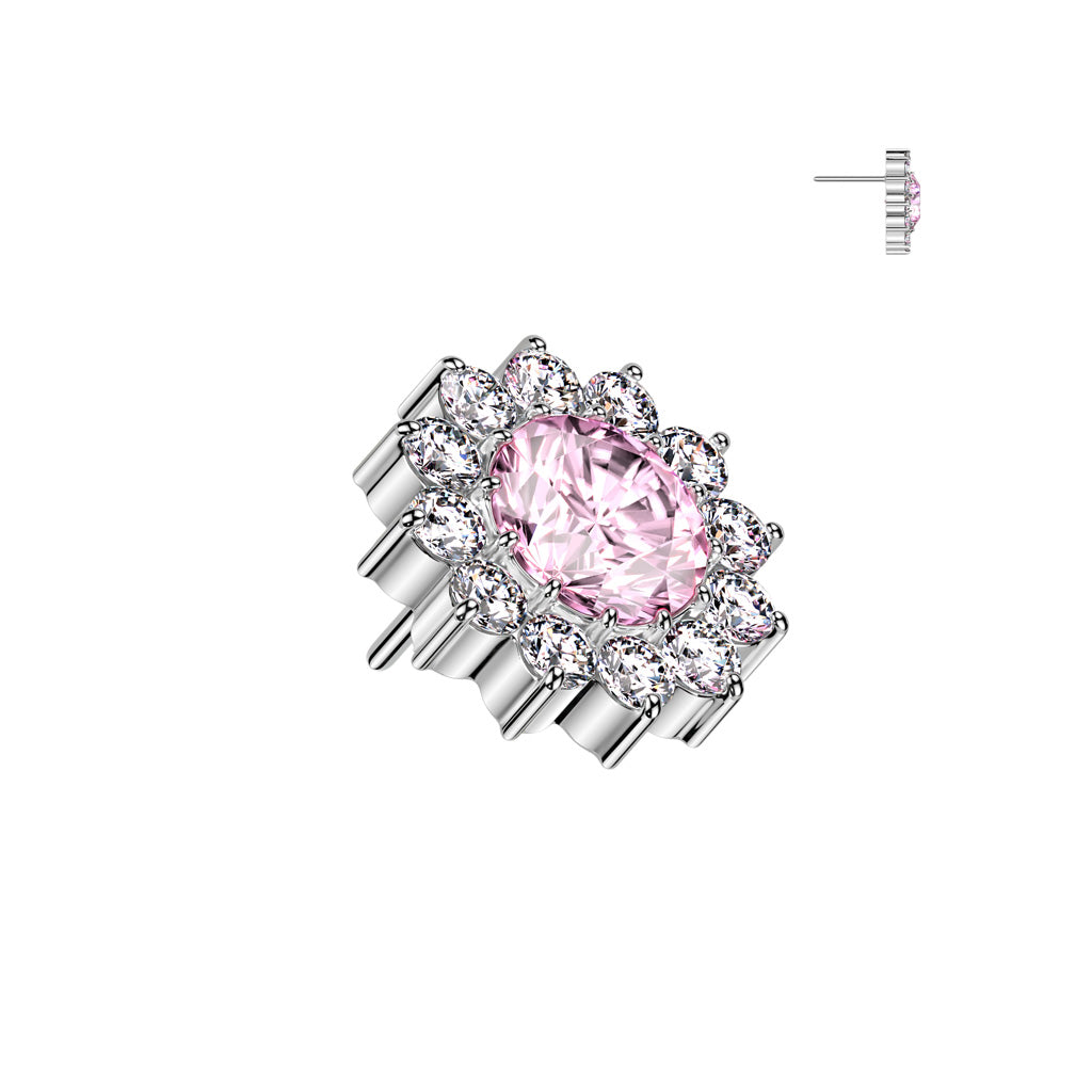 Implant Grade Titanium Pink CZ Large Sunflower Threadless Labret With Flat Back - Pierced Universe