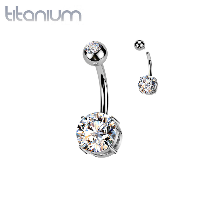 Implant Grade Titanium White CZ Basic Internally Threaded Belly Ring - Pierced Universe
