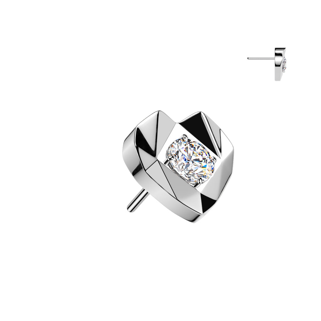 Implant Grade Titanium White CZ Ridged Cut Heart Threadless Labret With Flat Back - Pierced Universe