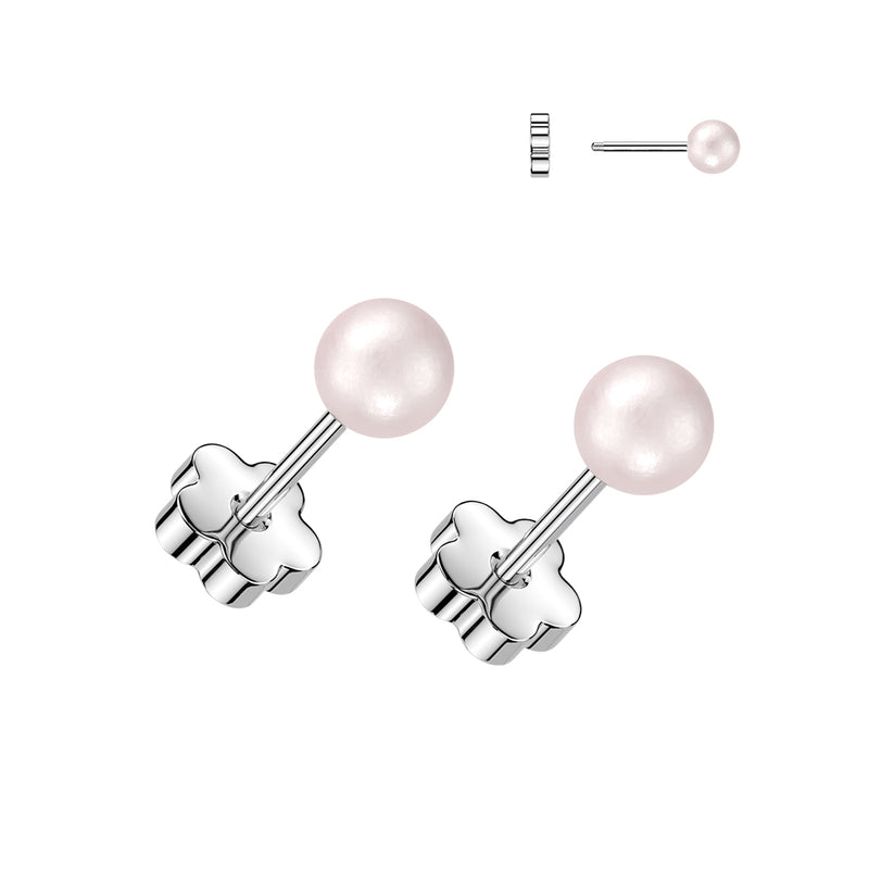 Pair of 316L Surgical Steel Pink Pearl Screw On Flat Back Earrings - Pierced Universe